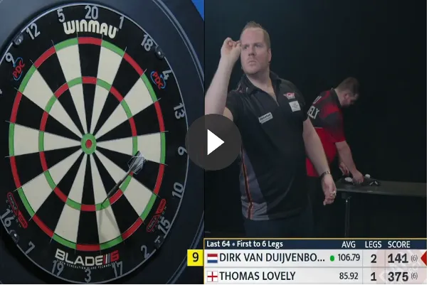 Hij was overigens niet de enige speler die erin slaagde om een 9-darter te gooien want eerder op de dag slaagde ook Ryan Searle hier al in. De 37-jarige Engelsman deed dit op weer een andere route door 144 uit te gooien na 180 en 177.