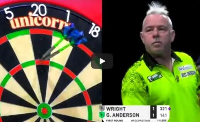 Peter Wright. Ondanks het korte format wisten ze in deze partij maar liefst 11 keer 180 te gooien. Het mooiste moment deed zich voor in de derde leg toen ze allebei mochten aanleggen voor een 9-darter.