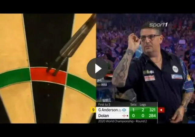 Gary Anderson op het PDC WK 2020 presteerde de Schot iets opmerkelijks. Hij gooide '9 perfecte pijlen' maar toch is hij niet halverwege de 100.000 pond dat staat op het gooien van twee 9-darters. Zoals te zien is op onderstaande beelden gooide hij dit namelijk achterstevoren. Voor de oplettende kijker gooit hij bovendien 3 punten te veel maar bijzonder is het zeker.