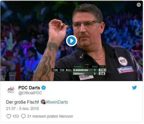 Op zaterdagavond sneuvelden veel grote namen op de World Series of Darts Finals en tot deze groep behoorde ook Gary Anderson. Dave Chisnall stuurde de tweevoudig wereldkampioen naar huis maar niet voordat The Flying Scotsman had aangetekend voor 'Der große Fisch'.