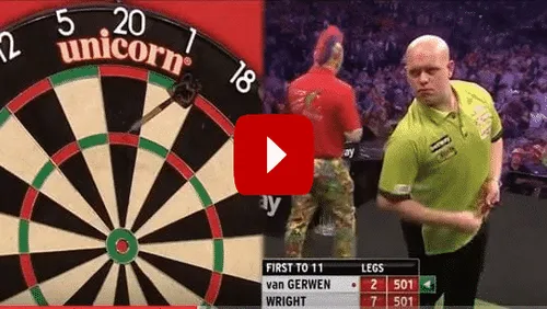 Het was billen knijpen maar ook genieten en aan het eind van de avond kon het verschil tussen vreugde en verdriet niet groter zijn. Het was een waanzinnige finale die alle kanten op ging. Kijk nogmaals naar de stand op de bijgevoegde foto. Maar liefst 7-2 was de voorsprong voor Peter Wright maar de Nederlander wist op sensationele wijze de stand gelijk te trekken naar 8-8. Wat daarna gebeurde zal iedereen nog bijstaan. Heb je het toch gemist of wil je het nogmaals herbeleven dan kan dat via onderstaande video waarin de volledige finale is te bekijken.