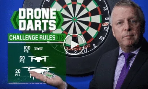 Sponsor van enkele grote PDC dartstoernooien, Unibet, organiseert regelmatig leuke uitdagingen voor de profspelers. Een leuke aflevering die we onder de aandacht willen brengen is 'Drone Darts!'. Raymond van Barneveld, Michael van Gerwen, Peter Wright en James Wade worden uitgedaagd om drones uit de lucht te werpen met hun darts. Hoe kleiner de drone hoe meer punten dit oplevert. Weet er iemand 180 punten bij elkaar te gooien?