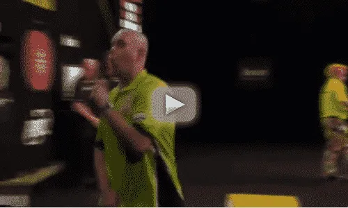 Direct na het gooien van de winnende pijl in de finale van de Grand Slam of Darts trok