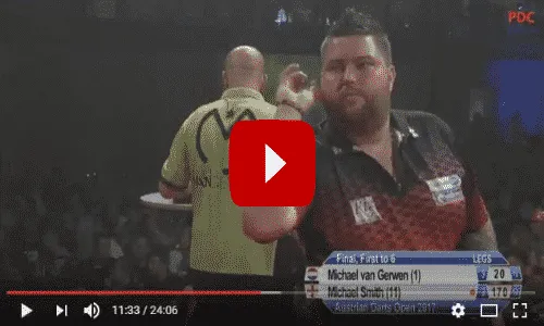 Michael Smith en ze wisten elkaar het vuur aan de schenen te leggen. Ze stuwden elkaar zo naar grote hoogten dat Smith er zelfs een 170-finish voor nodig had om de voorsprong in de partij weer kortstondig over te nemen. Het zou uiteindelijk uitkomen op een allesbepalende laatste en beslissende leg waarin Van Gerwen liet zien uit wat voor hout hij is gesneden.