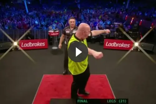 Zondagavond pakte Michael van Gerwen zijn eerste titel van 2020 al leek dat in het begin van de partij nog naast onmogelijk. Gerwyn Price liep namelijk uit naar een 5-1 voorsprong en was daarmee al bijna halverwege het aantal van 11 benodigde legs. Toch wist Van Gerwen de druk op te voeren en begon The Iceman te missen op cruciale dubbels. De nummer 1 van de wereld vocht zich terug in de partij en deelde de genadeklap uit met onderstaande prachtige 136-finish.