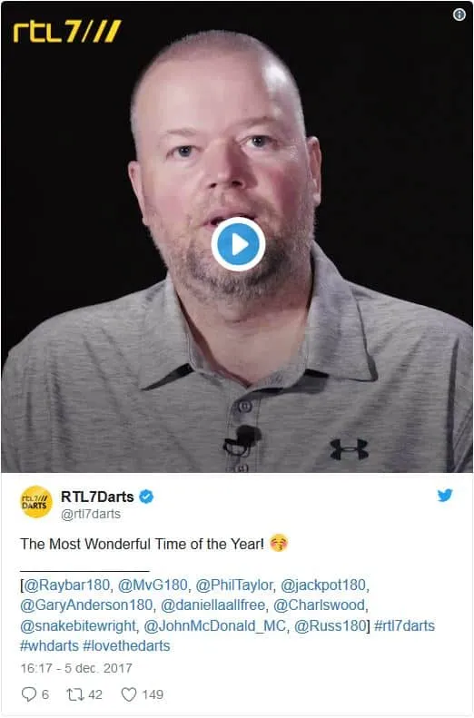 Peter Wright een promo laten inspreken voor het PDC WK op RTL7 gebeurt natuurlijk in het Engels. Maar waarom niet een keer in het Nederlands moet de redactie gedacht hebben. En zo geschiedde. Het leverde hilarische beelden op PDC WK-spelers die een poging doen om het wereldkampioenschap in het Nederlands te promoten. Ook
