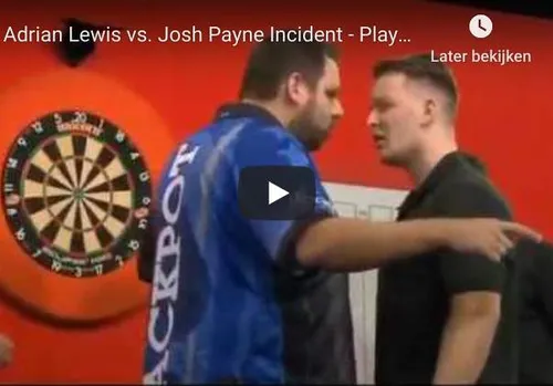 Terwijl de camera's vooral gefocust zijn op het hoofdpodium van de Players Championship Finals gebeurt er ook van alles op het tweede podium. Dit bleek vrijdagavond nogmaals toen er een opstootje ontstond tussen Adrian Lewis en Josh Payne na afloop van hun duel. Het publiek was op de hand van The Jackpot en Josh Payne was daar gefrustreerd over en dit ontaarde in onderstaand incident tussen beiden.