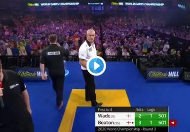 Steve Beaton toen The Bronzed Adonis op een 3-2 voorsprong stond. Dit moment is hieronder te zien.