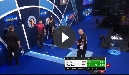 Mervyn King donderdagavond. Allereerst won hij het 'bullen' achter de schermen maar desondanks werd zijn naam op het scorebord aan de rechterkant opgeschreven, iets wat niet gebruikelijk is. Wat het nog erger maakte is dat de scheidsrechter recht voor zijn scorebord stond waardoor hij constant opzij moest stappen om zijn eigen overgebleven score te kunnen bekijken. Maar het kon blijkbaar nog erger, want bij het oprapen van één van zijn gevallen flights scheurde hij uit zijn broek zoals hieronder is te zien.