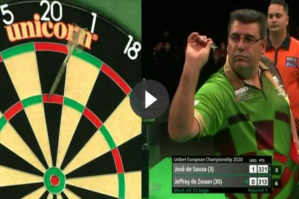Jose de Sousa erin geslaagd om een 9-darter te gooien. Hij deed dit in het duel met