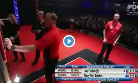 Meerdere spelers hadden afgelopen weekend last van koffers die op het vliegveld waren zoekgeraakt. De meesten ontvingen de koffers met kleding en dartpijlen nog net op tijd voordat ze het podium in Duitsland mochten betreden. Minder geluk was er voor Joe Cullen die het met een tenue en dartpijlen uit de lokale shop moest doen. Hij leek er echter weinig last van te hebben want de mooiste finish kwam dit weekend toch echt van zijn hand, zoals je hieronder kan zien.