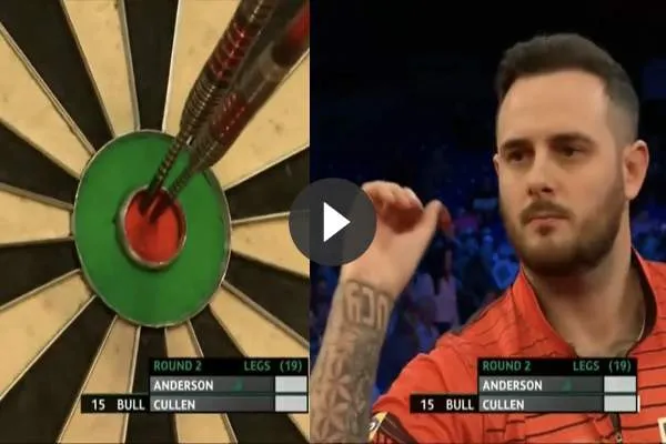 Gary Anderson met 10-1 van het bord te blazen. Bovendien deelde hij nog een tik uit met een zeer bijzondere checkout. De schitterende bull-bull finish die hij uit de hoge hoed toverde bekijk je op .