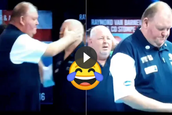 Peter Wright. We delen alvast een waarschuwing uit aan Snakebite want de teamgenoot van Henderson schrok zich vorig jaar een hoedje toen hij een tik kreeg zoals te zien is .
