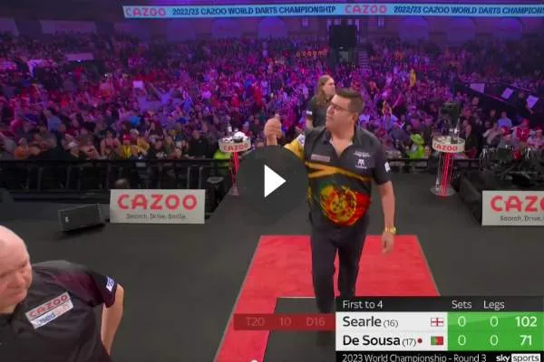Ryan Searle. Hij maakte de grootste blunder die we tot op heden hebben gezien op dit wereldkampioenschap. Dit bizar moment is te bekijken op .