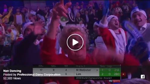 Tijdens de partij van de 63-jarige Paul Lim was er een 80-jarige supporter aanwezig die zichtbaar aan het genieten was. De dansende en swingende darts-oma werd opgepikt door de aanwezige camera-mannen en op dit moment is ze zelfs een ware hit op internet. De video waarin ze dolenthousiast haar idool Paul Lim aanmoedigt is hieronder te bekijken.