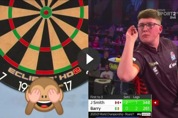 Jeff Smith was met 3-1 te sterk voor de Ier en bovendien kende hij een opmerkelijk moment in set 3. Terwijl er nog 261 punten op het scorebord stonden gooide hij namelijk een pijl buiten het bord zoals te zien is op .