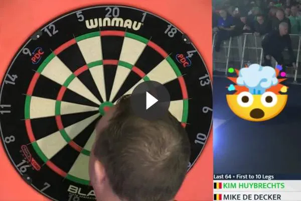 Op de UK Open eindigde het duel tussen Kim Huybrecht en Mike de Decker op bizarre wijze. The Hurricane wist het duel met 10-8 te winnen al zou je dat niet zeggen na het zien van zijn reactie na de partij. Hij deelde namelijk een bizarre kopstoot aan het dartbord zoals te zien op .