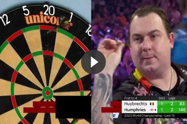 Kim Huybrechts volop in strijd met Luke Humprhies in strijd voor een plek in de kwartfinale van het PDC WK. De heren liepen naar 1-1 in sets en 2-2 in legs toen de Belg pijnlijk in de fout ging. Het zou de doodsteek zijn voor The Hurricane in deze partij omdat hij daarna geen set meer zou pakken. Dit pijnlijk moment is hieronder te zien.