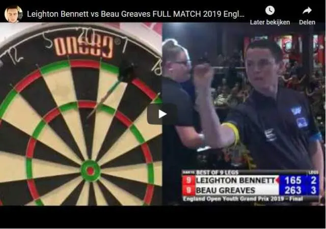 Phil Taylor had verslagen mocht hij in de finale van de England Open Darts Youth Final 2019 aantreden tegen Beau Greaves die met haar 15 jaar nog in de categorie 'meisjes' valt. Het werd een schitterend duel die het bekijken meer dan de moeite waard is!