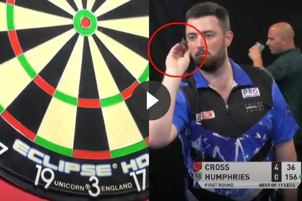 Op demotoernooien zie je het weleens voorbijkomen dat pijlen achterstevoren worden gegooid maar deze week gebeurde het ook tijdens een officiële partij. Luke Humphries deed het voor het oog van de camera in zijn duel met Rob Cross. Het opmerkelijk moment is .