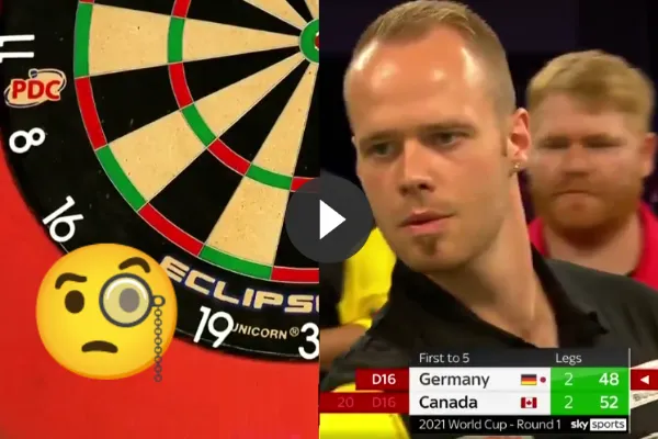 Max Hopp. De Duitser miste namelijk het bord op het moment dat hij aanlegde voor een 48-finish voor een 3-2 voorsprong. Het moment dat Hopp snel zou willen vergeten is te bekijken op .