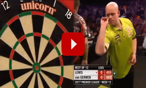 Eerder op de avond hing Michael van Gerwen een nederlaag boven het hoofd tegen Dave Chisnall. Hij overleefde matchdarts en wist nog met een gelijkspel nog één punt uit het vuur te slepen, maar tevreden was hij allerminst. Dat moest anders en dat gebeurde anders. Hij sprak de belofte uit om later op de avond te gaan knallen en dat heeft Adrian Lewis geweten. In 10 minuten werd de tweevoudig wereldkampioen omver geblazen met een 7-0 overwinning. Zie hieronder voor de beelden.