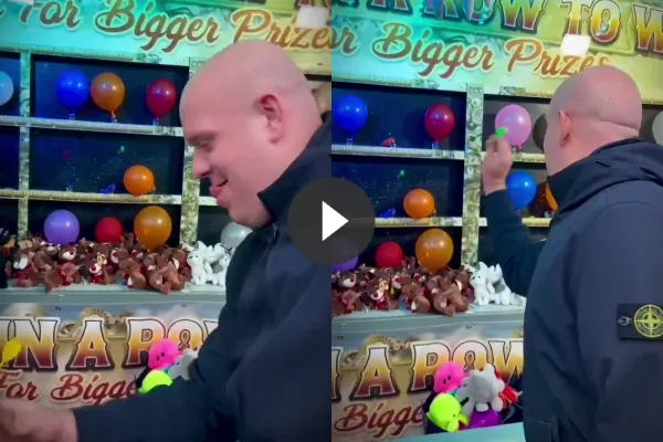 Van Gerwen ging met zijn vriend Harold Wieleman naar de kermis in London en deed mee aan een potje darten zoals je kan zien op
