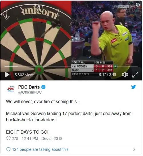 VIDEO: Michael van Gerwen gooit 17 perfecte darts op PDC WK