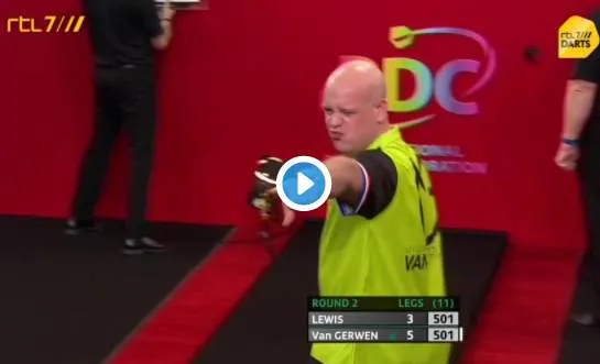 Michael van Gerwen is er zaterdagmiddag in geslaagd om een 9-darter te gooien in zijn duel met