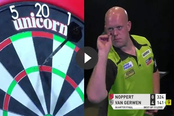 Peter Wright. In de kwartfinale was de nummer 1 van de wereld ook op dreef en bij een 4-0 voorsprong legde hij aan voor een 9-darter tegen