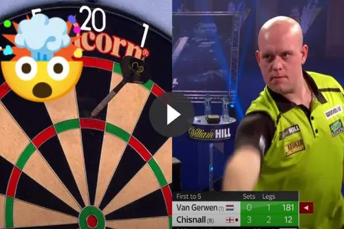 Het zat er in de kwartfinale niet in voor Michael van Gerwen die met 5-0 klop kreeg van Dave Chisnall. Desondanks was er nog een bijzonder moment waarbij Van Gerwen een kleine darts-les gaf aan zijn tegenstander. Chizzy mocht aanleggen voor een 9-darter maar zijn 141-finish ging mis op dubbel 12 waarna Van Gerwen een opmerkelijke worp gooide. Dit moment en de reactie van de Engelse commentators is te zien is op .
