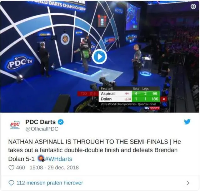 De eerste twee halve finalisten van het PDC WK zijn bekend. Daar waar een ware kraker werd verwacht tussen