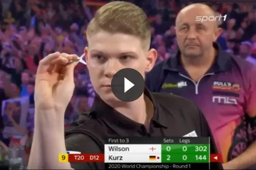 Zoals eerder gemeld ligt er 100.000 pond klaar voor de speler die erin slaagt om twee 9-darters te gooien op het PDC WK 2020. Met dit in het achterhoofd blikken we terug op onderstaande leg van Nico Kurz. Deze gooide hij in zijn duel met James Wilson.