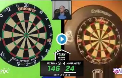 Tijdens de vijfde speelavond van de Home Tour van de PDC deed er zich een opmerkelijk moment voor. Dit gebeurde tijdens het duel van Luke Humprhies tegen Joe Murnan. Op het moment dat Humprhies wilde aanleggen voor de dubbel 12 om de partij in het slot te gooien, gebeurde onderstaande waardoor de partij even werd stilgelegd.