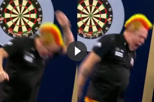 Callan Rydz wist het Peter Wright enorm moeilijk te maken in de kwartfinale van het PDC WK 2022. Snakebite had een waanzinnige comeback nodig om alsnog door te gaan naar de halve finale. Direct nadat dit was gelukt was er een enorme ontlading bij Wright die zijn pijlen hard op de grond smeet. Dit moment is te bekijken op .