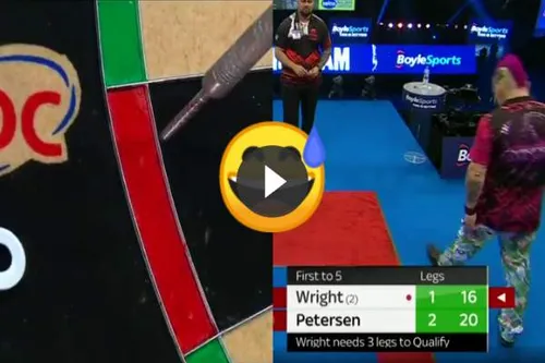 Devon Petersen op de Grand Slam of Darts. Tijdens de vierde leg ging de huidige wereldkampioen pijnlijk in de fout op dubbel. Nu kan dat een keer gebeuren maar onlangs gebeurde hem hetzelfde op de European Championship waarbij ook de 'walk of shame' eraan te pas kwam. Deze twee opmerkelijke momenten zijn .