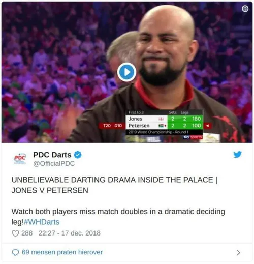 VIDEO: Petersen en Jones missen maar liefst 13 matchdarts