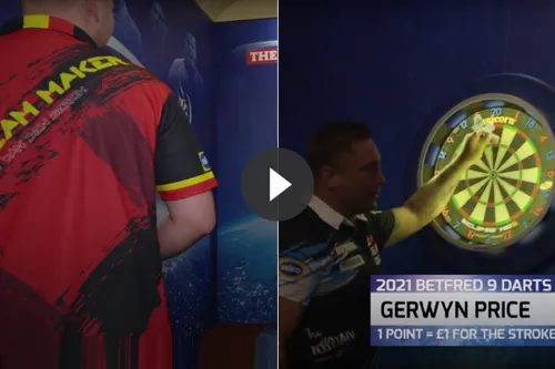 Dimitri van den Bergh hadden ook achter de schermen een strijd gaande en wel om de koppositie in de '9 Darts Challenge'. Ieder punt in deze uitdaging is goed voor 1 pond dat aan het goede doel 'Stroke Association' wordt overgemaakt. Bekijk het duel om de leiding tussen Price en Van den Bergh op .