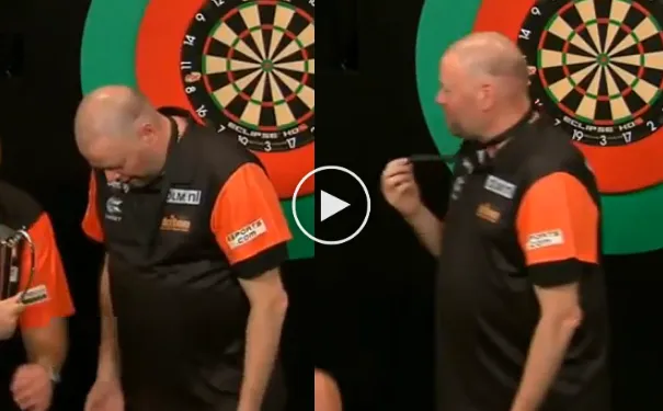 Michael van Gerwen. Maar lang kon de Hagenaar er niet van genieten want binnen no-time was hij zijn gouden medaille al verloren. Het gouden plakstuk liet op het podium los van zijn hanger en dus stond Barney met een lege hanger te kijken. De gouden medaille werd opgeborgen in zijn broekzak en zonder medaille poseerde de Nederlander voor de foto's.