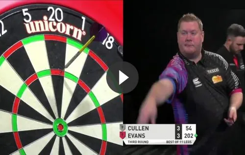 Ricky Evans liet zich op de PDC Super Series weer van zijn bekende kant zien. Hij gooide pijlsnel als altijd en toverde weer een maximale score in record tempo uit de hoge hoed. In slechts 2,5 seconden gooide hij een 180-er zoals te zien is op .