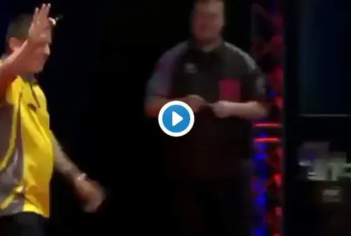 VIDEO: Ricky Evans gooit per ongeluk zijn hele dartpijl het publiek in