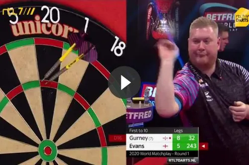 Daryl Gurney wist hij een 180-er te gooien in slechts 2 seconden zoals te zien is in .