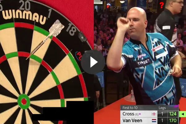 Rob Cross daagde de Nederlander uit en die flikte vervolgens hetgeen waar de Engelsman niet op had gerekend zoals te zien is op