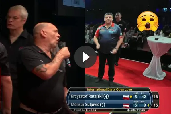 Michael van Gerwen in de finale te verslaan. Maar er was ook een hoofdrol weggelegd voor het publiek en wel in negatieve zin. Op zondag zaten er enkele vervelende bezoekers in de zaal die de partijen stoorde met gefluit en geschreeuw. Russ Bray reageerde woest op deze spelbedervers zoals te zien is op .