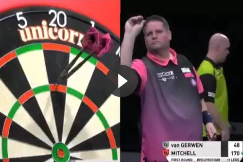 VIDEO: Scott Mitchell gooit 170-finish tegen Van Gerwen in PDC-debuut