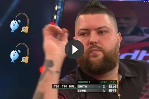 Michael Smith was lekker in vorm tijdens de eerste speelavond van de Masters 2021. BullyBoy wist namelijk zijn eerste 4 legs op het scorebord te brengen met een 170-finish, 132-finish, 170-finish en 150-finish. Alsof dit nog niet bizar genoeg was kende het duel een misschien nog opmerkelijker einde. Deze geweldige finishes en het bizar einde zijn te bekijken op .