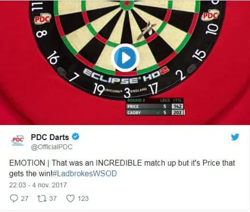 In het duel tussen Gerwyn Price en Corey Cadby liep de spanning hoog op. Beiden zijn niet vreemd van een uitbundige viering na het gooien van een hoge score een mooie finish. Om dit te incasseren van een ander is echter niet altijd even makkelijk. Dit bleek zaterdagavond ook na de winnende pijl van Gerwyn Price.