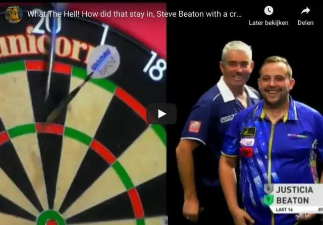 Steve Beaton loopt al een tijdje mee in de dartwereld, maar toch gooide hij vandaag een worp die hij in zijn hele carrière nog niet had gegooid. Om het nog gekker te maken was deze opmerkelijke trick shot uiteindelijk nog 60 punten waard ook. Hoe dit zo kwam zie je in onderstaande