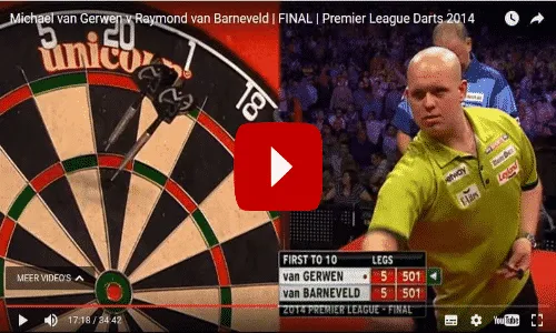 In 2014 stonden Michael van Gerwen en Raymond van Barneveld tegenover elkaar in de finale van de Premier League. Als opwarmer naar vanavond blikken we terug op deze waanzinnige finale waarin beide heren een gemiddelde gooiden van rond de 102,00. De winst zou uiteindelijk gaan naar Raymond van Barneveld die daarmee zijn eerste Premier League-titel in de wacht sleepte. Bekijk hieronder de finale terug van de Premier League 2014.