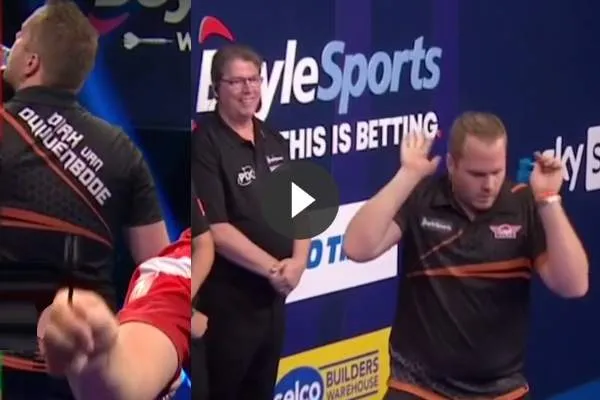 Mensur Suljovic naar huis te sturen op de World Grand Prix en had hier een gemiddelde van slechts 72,98 voor nodig. Op het podium gebeurde echter nog meer opmerkelijke dingen met de Nederlander. The Titan leek nog niet helemaal op de hoogte van de Corona-maatregelen en dat resulteerde in twee komische momenten zoals te zien is op .
